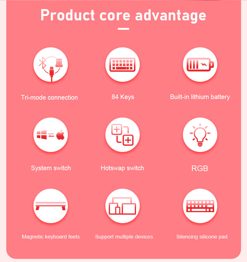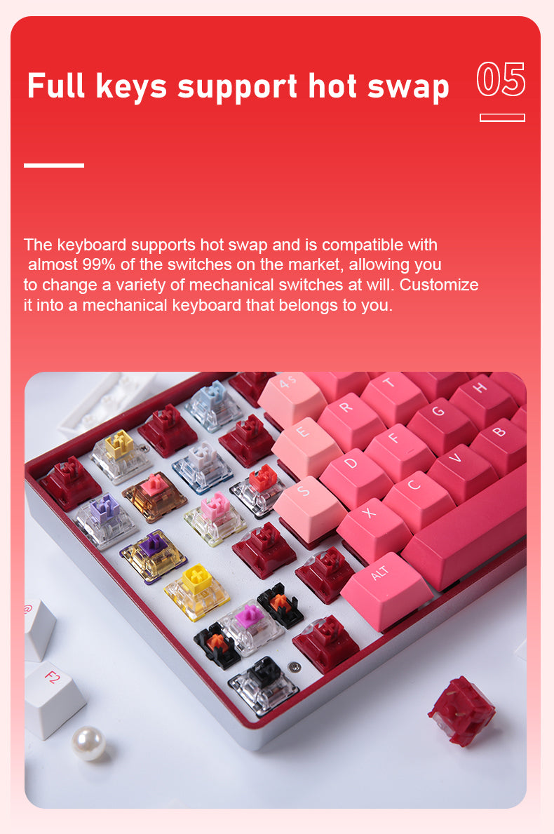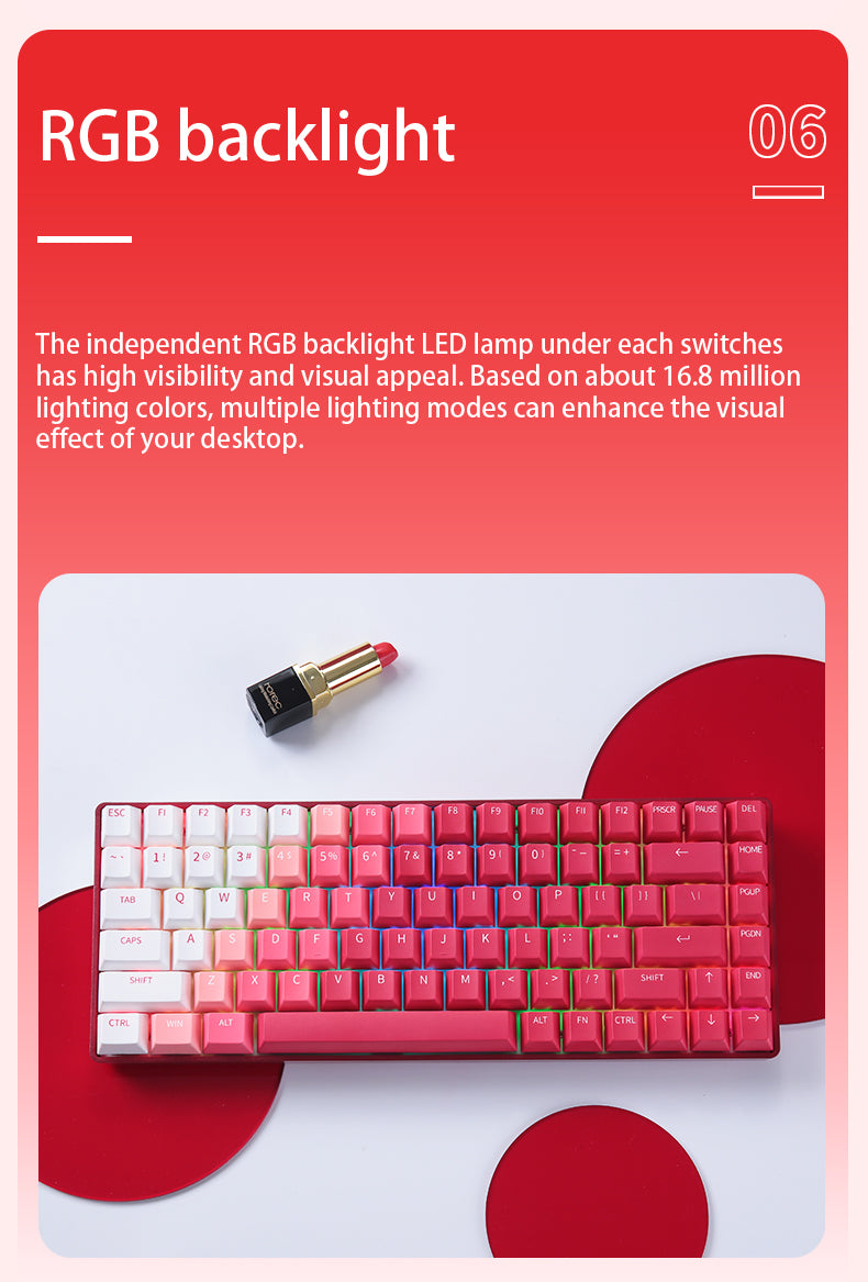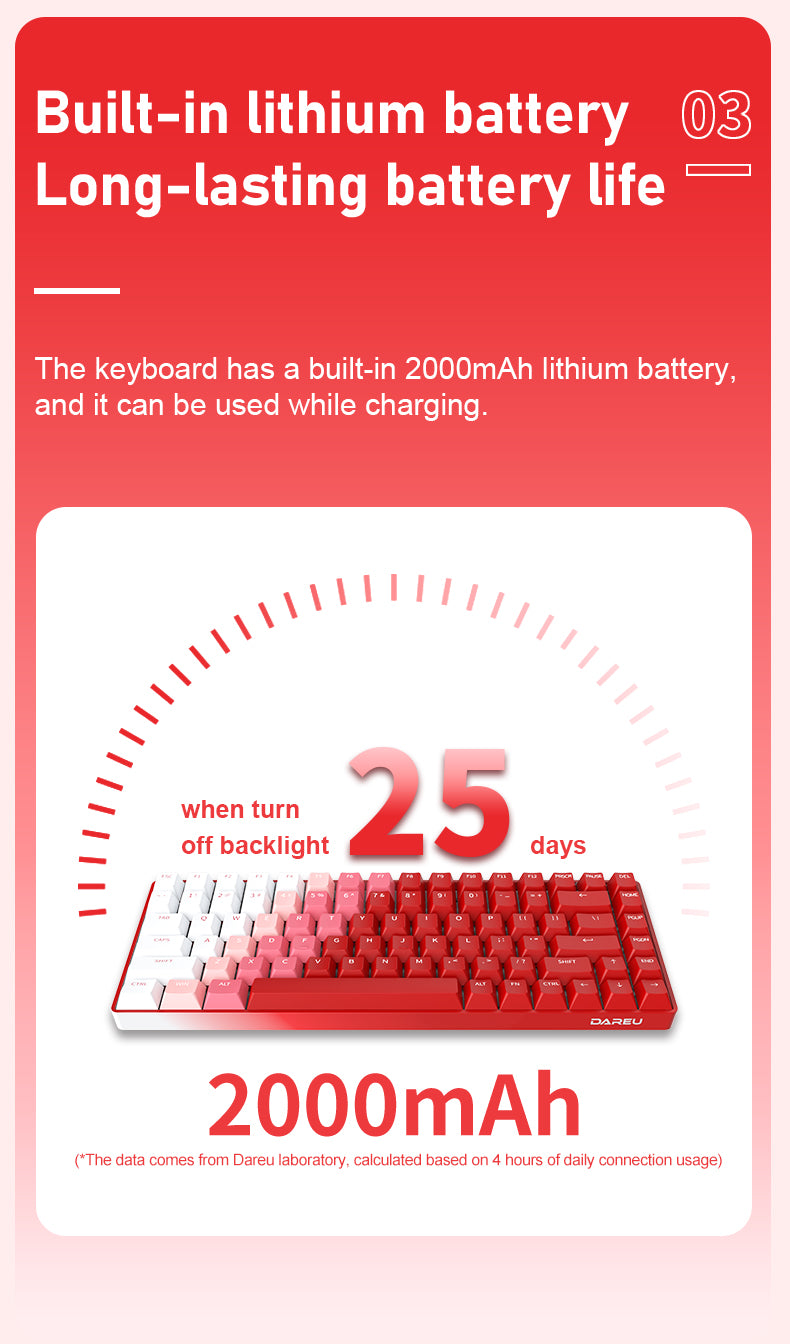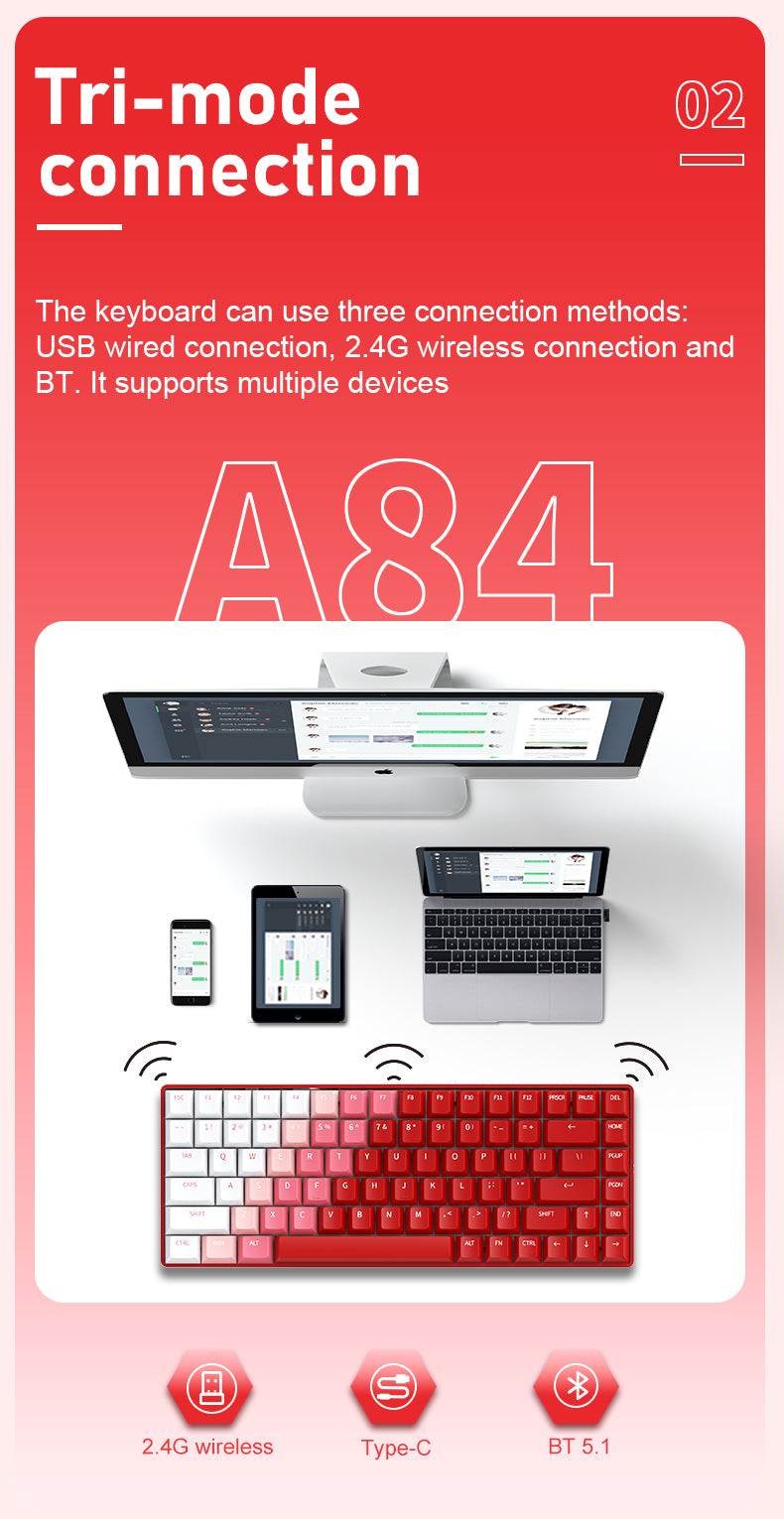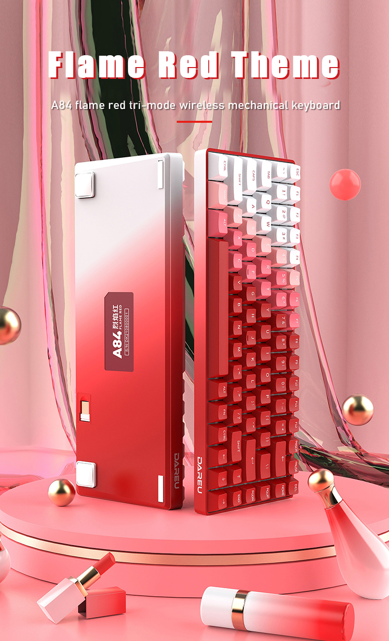 DAREU A84 Red Tri-Mode Mechanical Gaming Keyboard with LED Backlight