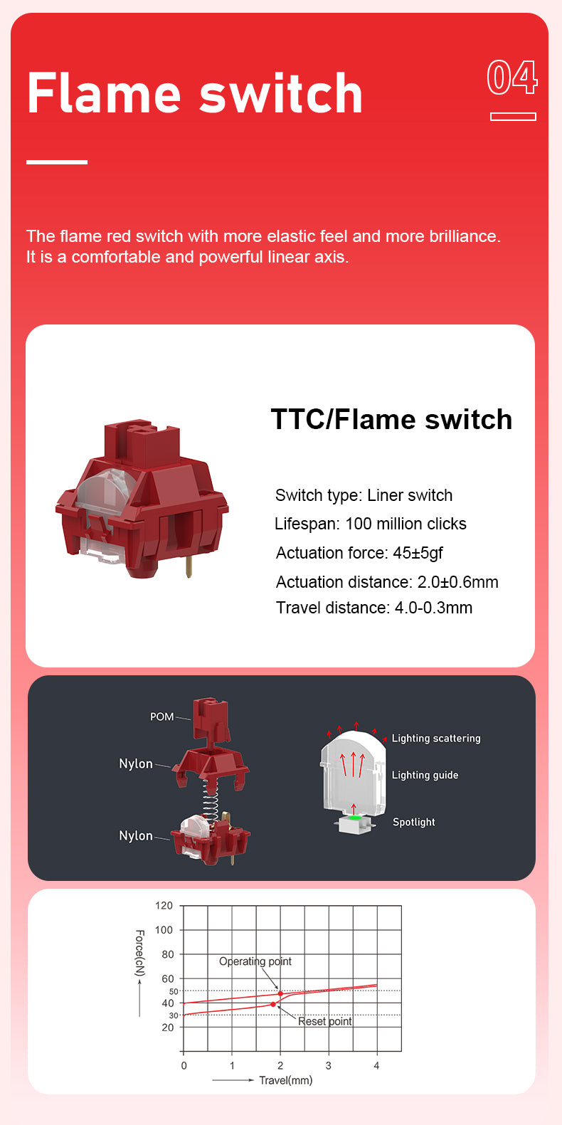 The DAREU A84 Mechanical Gaming Keyboard offers full RGB LED backlighting and custom TTC flame red switch, providing gamers with a superior performance and full control. Its 100% hot-swappable design allows for a smoother transition during intense gaming sessions. Enjoy enhanced precision and responsiveness to enhance your gaming experience.